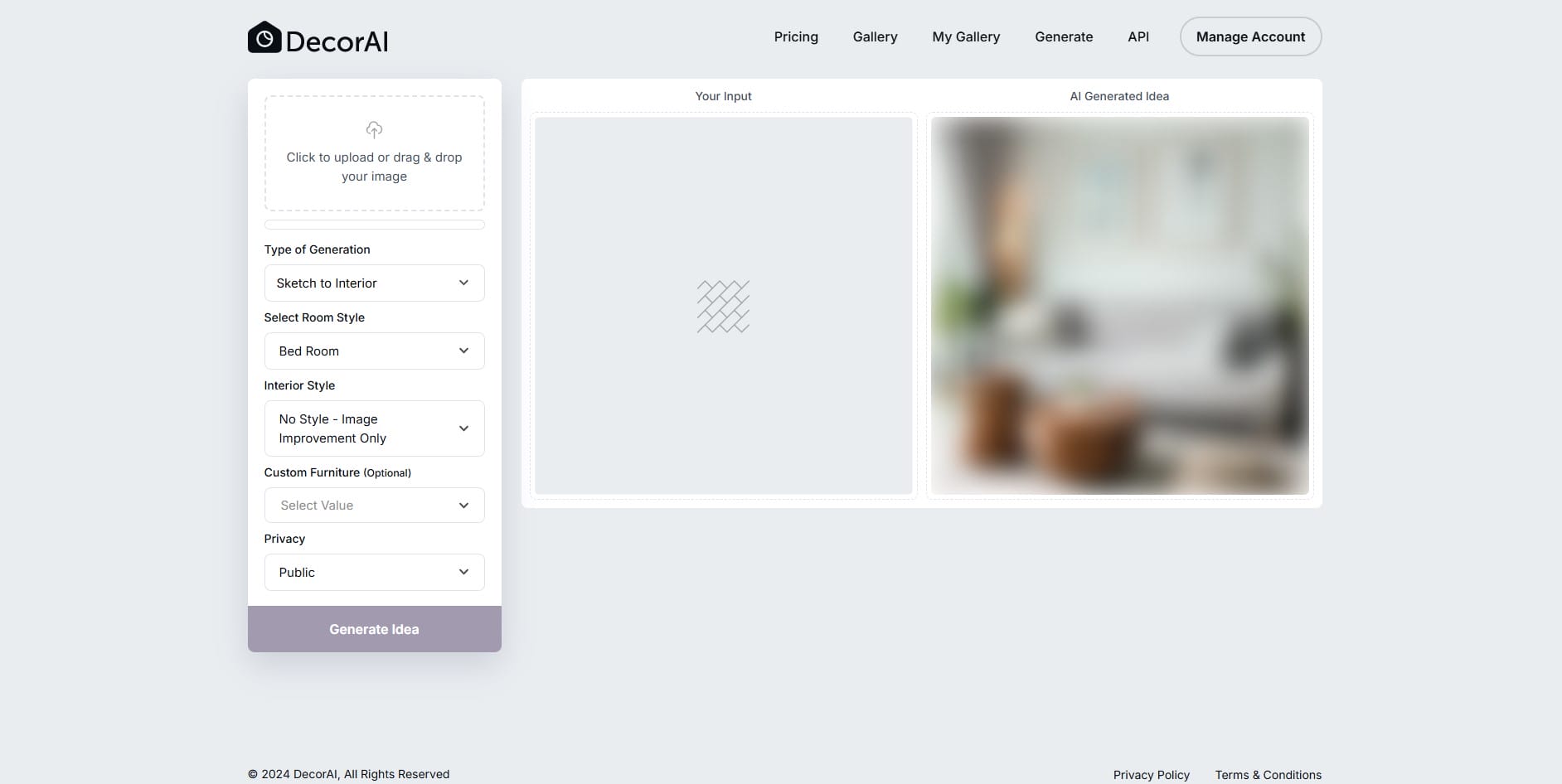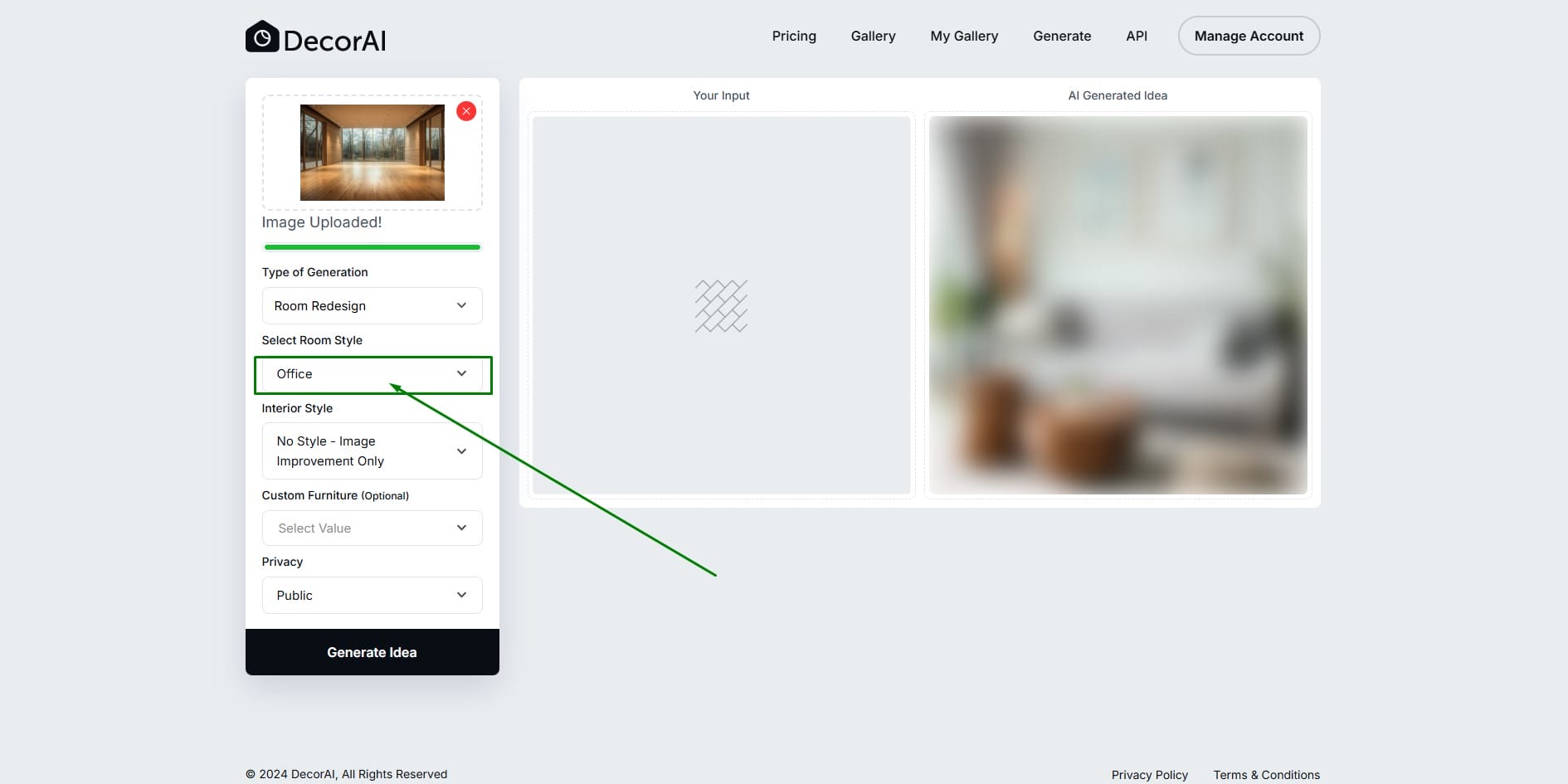 3. Room Style: 100+ room style available on decorai. See real AI interior transformations in the DecorAI Gallery and imagine how stunning your own space could look in minutes.